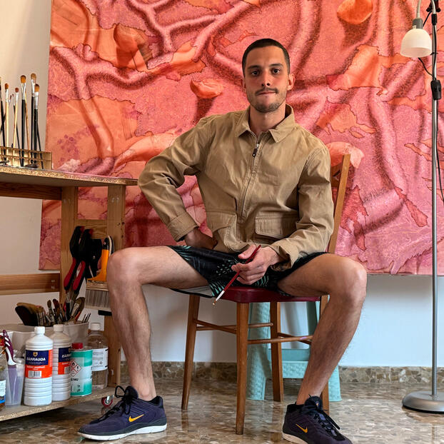 My pictorial practice is located at the intersection between the human body and the patterns of nature, exploring their formal, symbolic and tactile affinities. In my works, anatomical elements such as skin, folds or cavities merge with organic textures that refer to barks, lichens or mineral formations, generating hybrid territories that invite a sensory and ambiguous contemplation. I use oil as a means to build dense, material and enveloping surfaces, where color and shape unfold in a constant state of transformation. Through this fusion between the bodily and the natural, I am interested in questioning the boundaries between the internal and the external, the human and the non-human, the visible and the intuitive.